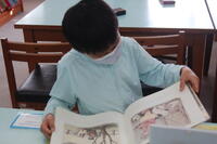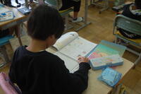 1年生国語の授業の様子です。「かずのことわざ」を覚えていました。「一をきいて十を知る」「二かいから めぐすり」「石の上にも三年」「七ころび八おき」「十人十いろ」「百ぶんは一けんにしかず」「千りのみちも一ぽから」と7つのことわざをみんな暗記して発表していました。