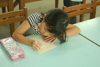 1年生が友達のいいところ見つけをしました。最初にどの友達のよいところを書くのかを決めました。その後、自分が書く友達のことをよく考えて書いていました。「いつもみんなのリーダとして頑張ってくれてありがとう」「優しくしてくれるところステキだね」「いつもあいさつが上手だね」「勉強頑張っているとこステキだね」などたくさん友達のいいところを見つけることができました。