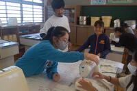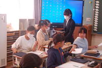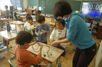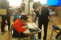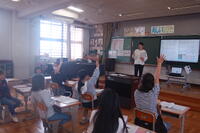5年社会科「自動車をつくる工業」の学習に合わせて、出前授業「トヨタスクール(第2・3校時)」を行いました。はじめは、自動車ができるまでの工程を、スライド(電子黒板)を使いながら説明してくださいました。担当の方の説明では、「作業は自動化が進んでいますが、トヨタでは『自働化』という字を使います。人の知恵を大切にするという意味で、動ではなく、にんべんがある働にしています」「失敗や間違いは絶対に逃しません。解決してから次の作業に進みます」「作業ルールを守ることを徹底しています。ルールを守らないということは、あってはならないことです」などの言葉が印象的です。安全・安心な自動車をお客様に提供するための真剣な思いが伝わってきました。授業後半では、本物の作業着に着替え、作業工程の疑似体験をしました。どの子供も真剣に取り組んでいました。