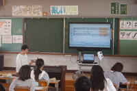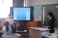 6年生外国語の授業の様子です。好きな動物について、その動物の特長や生息しているところ、何を食べているのかを調べました。調べたことを、英語で発表します。タブレット型端末にまとめたことを電子黒板にうつしてみんなに伝える練習もしました。