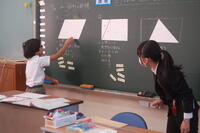 教育実習生が研究授業を行いました。5年1組で、算数科「図形の面積」の授業の様子です。今回の授業は「どうすれば、三角形の面積が求められるだろうか」という課題について考えました。これまで正方形や長方形、平行四辺形の面積の求め方を学習してきたことを生かした、ワークシートに自分の考えを一生懸命に書き込んでいました。タブレット型端末を活用しながら、自分の求め方をみんなに発表することができました。実習生も子どもたちの発表を1つ1つ確認しながら丁寧に授業を進めていました。実習期間は、今週の金曜日までです。残りあと少し、たくさんの経験をしてほしいです。