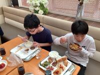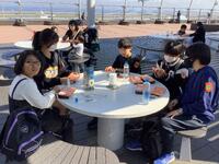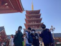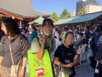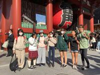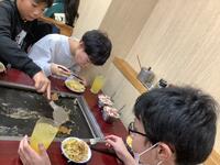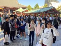 上野から東京メトロに乗り込み、いよいよ浅草です。昼食はもんじゃ焼きです。初めての体験の子供が多く、はじめは慎重な様子でしたが、慣れてくると焼き方が上達しました。