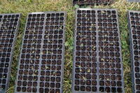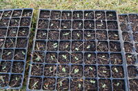 4年生が緑の少年団活動として、先週種まきをしたパンジー、ビオラ、クリサンセマムの芽が少しずつ出てきました。これまで、芽が出てくるまでは、日陰に置いていたのですが、外の日当たりのよいところに移動しました。パンジー、ビオラ、クリサンセマムなどの芽が大きくなってきたら、少しずつ鉢に植え替えをしていきます。
