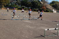 3・4年生の体育「ハードル走」の学習の様子です。今日の授業では、ハードルの間隔を5.5m、6m、6.5mとして、3つのコースを走ってみて、自分の歩幅に合う間隔のコースを一人ひとり確認しました。ハードルがある場合とハードルがない場合とのタイムがどれだけ違うのか測ってみました。これから練習を重ねて、どれだけタイムの差が縮まるか楽しみです。