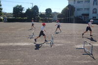 5年生の体育「ハードル走」の学習の様子です。今日の授業では、ハードルの間隔を6m、6.5m、7mとして、自分の歩幅に合う間隔を一人ひとり確認しました。これから練習を重ねて、どれだけタイムの差が縮まるか楽しみです。主にハードル走を行いました。実際にハードルを跳ぶ練習を始めました。