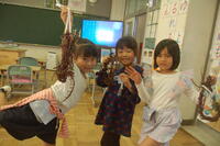 さつまいも掘り終了後、4時間目に野菜大臣の4年生の子どもたちが長めについたつるをはさみを使って切り、干す作業をしてくれました。改めて、今年のサツマイモの大きさにびっくりでした。