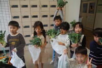 坂っ子農園のブロッコリーが順調に育ち、子どもたちが持ち帰りました。今年は暖かい日が続いているためなのか昨年度よりも早い収穫となりました。子どもたちは、取れたてのブロッコリーを手にして、「ブロッコリー大好き!」とうれしそうに持って帰りました。