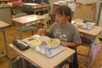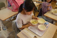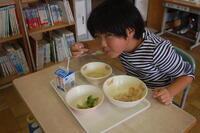 1学期最後の給食です。メニューは八宝菜とはるさめスープなどでした。1年生も最初は食べるのに時間がかかることもありましたが、今でははやく食べられる子が増えてきました。本当に坂小学校の給食は毎日おいしいです。坂小学校の農園や坂地区で収穫した野菜がたくさん出ます。2学期もおいしい給食が楽しみです。