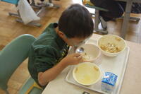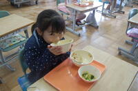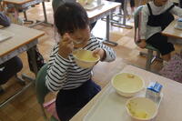 読書週間にあわせて、今週栄養士さんが「おはなしランチメニュー」を考えて、出してくれます。初日は、「カボチャスープのおふろ」より「かぼちゃスープ」が出ました。子どもたちは、かぼちゃやたまねぎ、ベーコンなどの入ったあたたかいスープをとてもおいしそうに食べていました。