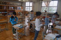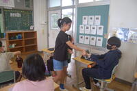 1年生は道徳の授業であいさつの大切さについて考えていました。教科書にある「あいさつランド」という「すごろく」を楽しみながら、あいさつの場面とあいさつの種類について学んでいました。どのグループも和気あいあいとしていて、笑顔溢れる活動となっていました。