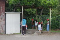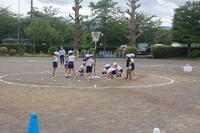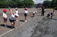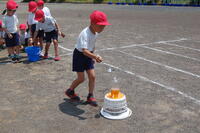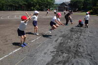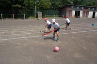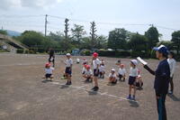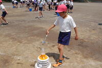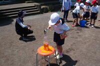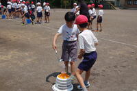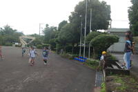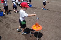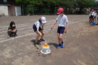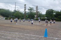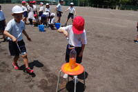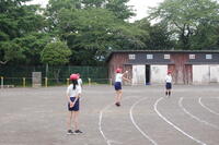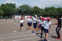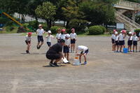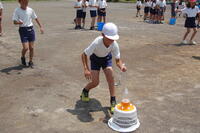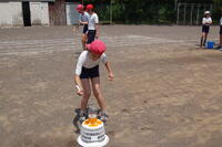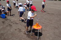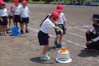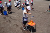 1年生も運動会学年種目練習を行いました。1年生は、水くみリレーをやるのが初めてです。やり方の説明を先生から聞きました。その後に実際にやってみました。初めてなので、なかなか水を入れることができませんが、子どもたちは楽しそうに水くみリレーを行っていました。