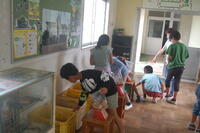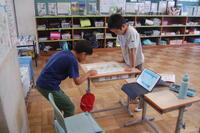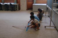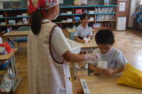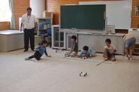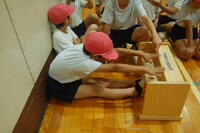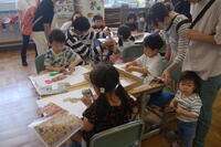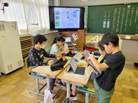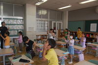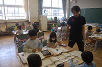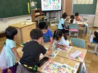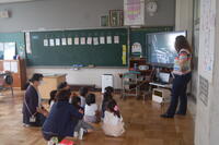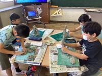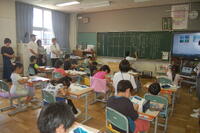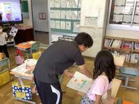1年生は図画工作科で「はらぺこあおむしをつくろう」を行いました。はさみを使って、丸く切る練習をしながらあおむしを作っていきました。広告のチラシを使ったアイデアはとても良かったです。2年生は国語で「たこのすみ いかのすみ」の学習をしていました。3年生は理科で「風やゴムで動かそう」を行っていました。自分でゴムで動く車を使ってゴムのはたらきについて学習しました。