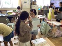 2年生の図工の様子です。子供たちは「ふしぎなたまご」をテーマに、自由な発想を大切にしながら作品(絵)づくりに励んでいました。イメージできたところで、タブレット型端末を効果的に活用して、参考になる絵を探したり、頭に浮かんだことをまずはMeta Mojiy上で描いてから画用紙に描いたりするなど、一人一人が工夫して取り組んでいました。このことで、子供たちに安心感が生まれ、落ち着いて作品作りに励むことができました。