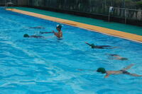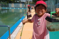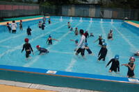 2時間目に3・4年生がプール開きをしました。雨が続いていたので、待ちに待ったプール開きでした。少し水温が低かったので寒かったですが、子どもたちはプールに入ることができ大喜びでした。だるまや大の字になって浮いたり、プールの周りを歩いて、流れるプールをつくったりと、とても楽しそうでした。最後にボール拾いをやって盛り上がりました。