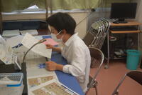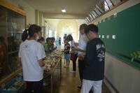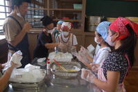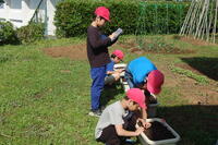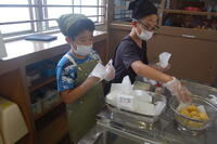 野菜大臣の4年生が、ジャガイモの販売のために袋詰めを行いました。一袋の重さがだいたい同じになるように袋に詰め、テープでとめます。袋にジャガイモを詰める子、重さを確認する子、テープでとめる子、コンテナに数を数えて入れる子など、分担して作業を行いました。「楽しい!」「袋詰め、たくさんできた!」と、どんどん袋に詰めていきました。