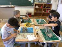 4年生図画工作科の「立ち上がれ!ねん土」の授業の様子です。板状にしたねん土やひも状にしたねん土の形を生かして、立ち上げてみました。ねん土を巻いたり、細く切って組み合わせたりしました。柱を作ってタワーみたいにしている子もいました。どの子もとても楽しみながら作っていました。完成した作品を見て、まさに「立ち上がれ!ねん土」でした。