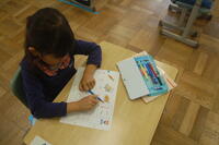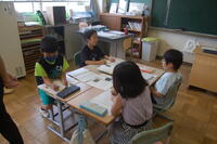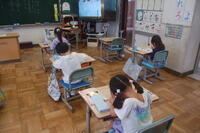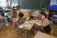 1年生が国語の授業でひらがなの「を」の練習をしました。これで、全部のひらがなを学習しました。1年生は、ひらがなを覚えたので、文章もどんどん書けるようになってきました。これからは、少しずつカタカナも学習していきます。