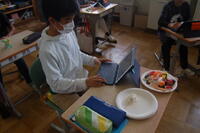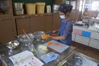 5年生の家庭科の授業で調理実習を行いました。「カラフルゆでやさい」ということでブロッコリーとにんじんとキャベツを使ってサラダを作りました。野菜を包丁を使って丁寧に切ったり、ゆで具合(野菜の柔らかさ)を確認したりしながら進めていました。途中時間があるときに使った調理器具を洗ったり、次の手順を確認したり時間を上手に使っていました。盛り付けした後に、おいしくいただきました。調理実習の後には、「ドレッシングと野菜の相性が良かった」「事前学習よりおいしくできた」「少し野菜がかたかった」などの感想をタブレット型端末にまとめていました。タブレット型端末を効果的に活用することで、感想を子供同士で共有できたり、担任が一人一人の感想を素早く確認できます。