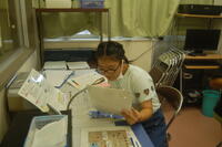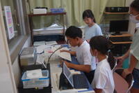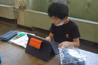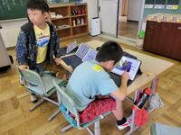 2年生のミニトマトに小さな実ができてきました。自分のミニトマトには、実ができているか一生懸命に探していました。「僕の実はすごく大きい」「僕のはたくさん実ができている」など、タブレット型端末で自分のミニトマトの生長を写真に撮っていました。教室に戻って、観察カードを書きました。