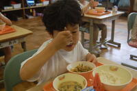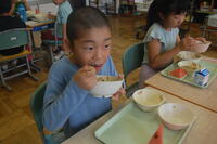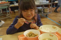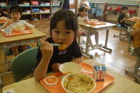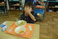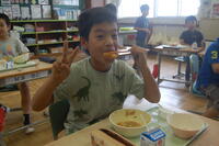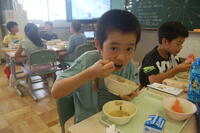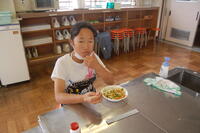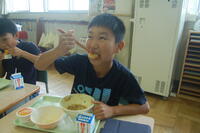 今週は、ふるさと給食週間です。今日の給食は、坂小学校で先週収穫した「さかじゃが」を使ったチンジャオロースが出ました。「さかじゃが」とお肉とたけのことしょうがとピーマンが入っている「チンジャオロース」は最高においしかったです。これから「さかじゃが」を使ったメニューがたくさん出るので、給食がすごく楽しみです。
