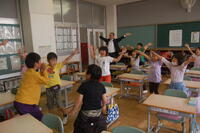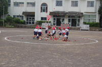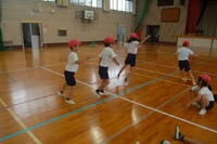 1・2年生が運動会の玉入れの練習を行いました。入場から退場までを行いました。入場した後にダンスを踊りました。どの子も楽しそうに元気いっぱいに踊っていました。踊り終わった後は、一気に玉入れです。ルールは、玉を先に全部かごに入れたチームが勝ちであるというものです。最後の一個が入るまで一生懸命に玉を拾ってかごに向かって投げていました。