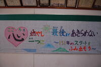 今年の運動会のスローガンは「心を燃やし 心を一つに 最後まであきらめない ~151年のスタートをふみ出そう~」です。どんなスローガンがよいかアンケートを取り、そのキーワードから代表委員会でスローガンが決定しました。このスローガンのようにみんなで心を一つにして、最後まで全力で頑張る姿を期待しています。