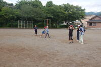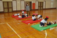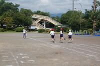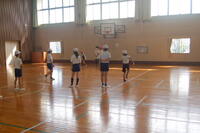 3・4年生が体育で新体力テストの「ソフトボール投げ」と「立ち幅跳び」の記録を取りました。最初に、少しソフトボールボール投げと立ち幅跳びの練習をしました。その後、4年生は最初にソフトボール投げ、3年生は立ち幅跳びの記録を測定しました。ソフトボール投げでは練習よりも記録が伸びている子も多くいました。立ち幅跳びでは、ひざをよく曲げ、手をよく振って遠くまで跳ぶことができていました。