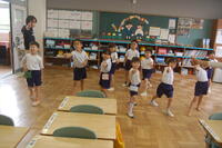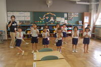 運動会で全校で踊るダンスの練習をしました。ダンスは、「箱根西麓三島野菜ダンス 坂小バージョンです」1年生は、初めて踊ります。昨年150周年を記念してダンスチームが踊りを考えてくれました。そのダンス動画を見ながら練習です。かわいらしく振り付けをし、最後はかっこよく決めポーズです。運動会でも元気にかわいく踊ってくれることでしょう。