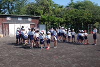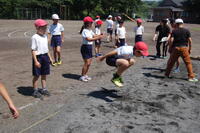運動会では、縦割りのなかよし班で、3年生から6年生までのリレー種目があります。その練習が行われました。最初に班ごとに分かれて、走る順番の発表がありました。その後、実際にリレーを行いました。スタートは5・6年生、その後3年生→4年生→5年生→6年生とバトンをつないでいきます。4チームで走りましたが、とても接戦でした。バトンパスの練習をするなど、チーム力を発揮してくれることが、今から楽しみです。1・2年生の応援もとても良かったです。