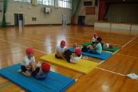 プログラム1は、全校による準備体操です。先生の声に合わせて、しっかりと行うことができました。どの子も、これから始める競技のために、一生懸命に体操をしていました。「がんばるぞ!」というやる気も伝わってきました。