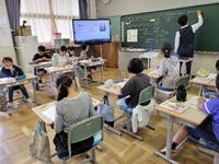 4年生は算数で「平行」について学習しました。授業のまとめとして、教室内にあるものから「平行」を探す活動をしました。学んだことが算数的活動をとおして生きた学びに繋がる活動はとても大切です。子供たちはタブレット型端末を効果的に活用して、平行と考えられるものを撮影し、説明時に皆がわかりやすく理解できるようにと、平行の箇所に線を引いていました。自分が見つけた「平行」を電子黒板に「見える化(視覚化)」しながら説明し共有できるのも、ICT機器を効果的に活用した学習の「よさ」の一つです。