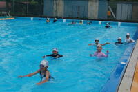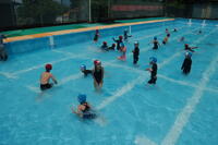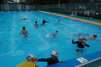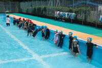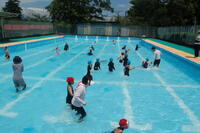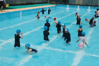 1・2年生が今年初めてのプールの授業を行いました。1年生は小学校生活初めてのプールの授業です。今週は、プールの水も低水位で行います。プールの入り方などのルールの確認をしました。お天気も良くなり、水温もちょうど良かったのか、とても気もちよさそうに入っていました。プールの中を歩いたり、ワニさんをやったりしました。最後にボール拾いを楽しみました。