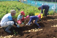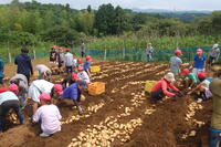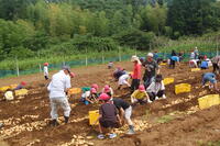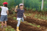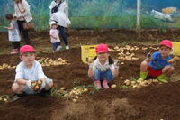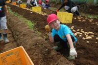 さあ、ジャガイモ掘りのスタート。1年生は初めてのジャガイモ掘りです。土に手を入れ、掘るたびにジャガイモがどんどん出てくるので、夢中になって、掘っていました。大きなジャガイモを掘ることができ、とても嬉しそうな顔をしていました。
