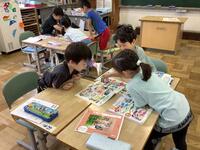 4年生国語科「調べよう まとめよう」の授業の様子です。百科事典を使って、大きなテーマから具体的に調べるための小さいテーマを決めました。大きくて分厚い百科事典から始まって、調べるための本にたどり着き、図書室の広い机の上は、幾つもの本でいっぱいになっていました。インターネット検索も便利ですが、こうやって百科事典を活用して調べていくのも、世界が広がります。子供たちからは、「こういう勉強、すごく楽しい!」という声が上がりました。