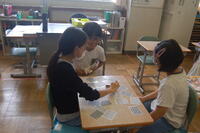 2年生国語の授業の様子です。「ほたるの一生」の文章が、段落ごとばらばらに提示されたワークシートを使っていました。時間の順序と様子とつながりを考えながら、友達とどのような順番になるか話し合っていました。お互いの意見交換をしている姿や並べた順番を決めた理由をつけて説明している様子に成長を感じました。