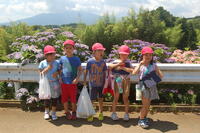 坂小学校が農事活動をさせていただいている農園(畑)近くに「あじさいロード」があります。今、見頃を迎えています。近くをお越しの際は、ぜひお立ち寄りください。