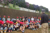 1・2年生が、坂小学校の近くにある「あじさいロード」を見に出かけました。白色、紫色、赤色、ピンク色、青紫色など、色とりどりのあじさいがとてもきれいに咲いています。なかよし班ごとに写真撮影をしてから、班ごとに「あじさいロード」を散策しました。「ピンクがとてもきれい」「僕は白色が好き」「私は、青紫色が好き」「このあじさい、僕の顔よりも大きい」など、たくさんの種類のあじさいに子供たちは、大喜びでした。2年生は、タブレット型端末を持っていったので、あじさいや友達との写真を多く撮影していました。