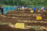 坂小学校の農園のじゃがいもがすくすくと育ち、収穫のころとなりました。6月14日水曜日の第2校時(9:15~10:00)にじゃがいもの収穫を予定しています。坂小学校には、小規模特認校制度があります。坂小学校に興味があり、「じゃがいも掘り」の体験を希望する方は、学校まで連絡していただければと思います。天候によって日程が変更になることもあります。