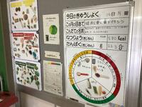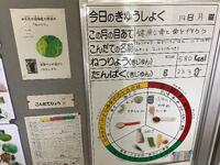 給食の食品群を「体(血・肉・骨・歯)をつくるもの」「エネルギー(働く力と体温)のもとになるもの」「体の調子を整えるもの」の栄養素に分類しています。委員会の子供たちが栄養士の指導・支援のもと、毎日掲示しています。栄養バランスの良い食事は、健康づくりに直結します。飽食の時代と言われる昨今。子供たちが将来、主体的に栄養バランスを意識した「食」を選択できる力を育てていきたいものですね。