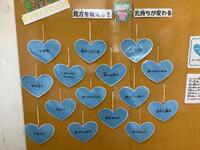 養護教諭は、ダイバーシティ(多様性)&インクルージョン(包摂性)を意識し、子供たちのより良い人間関係を目指した掲示を心がけています。この掲示物は、「リフレーミング」について理解できるように工夫されています。「リフレーミング」とは、物事を見る枠組み(フレーム)を変えて違う視点で捉え、ポジティブに解釈できる状態になることです。この掲示物は、「マイナスだと思われることが、見方を変えるとプラスに変わる」ことを、ハートを裏返すと分かる(気づく)仕組みです。大人(教師)にとっても大切にしたい思考ですね。