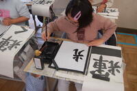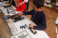 5・6年生が書き初めに挑戦しました。書いた文字は、「輝く未来」です。来年に向けてのメッセージ性のあるものにしました。お手本の文字をよく見て、大きく、力強く書くことができました。