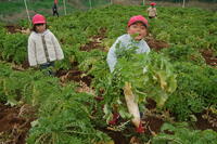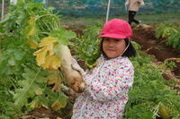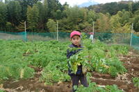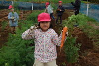 1年生が坂っ子農園に行って、大根の収穫をしました。大根もかなり大きくなっているので、前回抜いたときよりも大変でした。大根を揺らしながら、少しずつ抜いていきました。抜けたときは、「やったー。すごい大きい」と、自分の力で抜くことができたことにどの子もすごく満足そうでした。