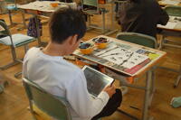 1年生が生活科の授業でどんぐりを使ったおもちゃ作りをしました。どんぐりけん玉、すごろく、的入れ、迷路、ピンボールなどたくさんのおもちゃを作っていました。おもちゃができあがったら、2年生から6年生を休み時間に招待して、みんなで遊びたいと思います。