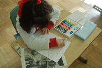 5年生図画工作の授業の様子です。箱の中にオリジナルの世界を作ります。自分のイメージを膨らませて、絵の具で色をつけたり、カラーセロハンやおはな紙を貼ったりします。それ以外にもビーズやモールなどの飾りを工夫してつけていました。箱が完成して、のぞいてみたときにどんな世界が広がっているか楽しみです。