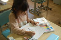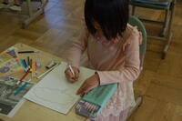 1年生は、昨日いただいた三島甘藷のお礼のお手紙を書きました。お芋がすごく美味しかったことを、文と絵に表してお手紙を書きました。みんな真剣に一生懸命書いている姿がとてもよかったです。