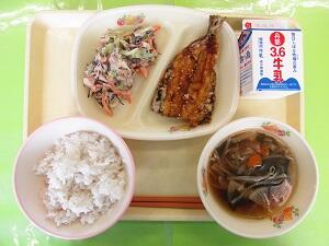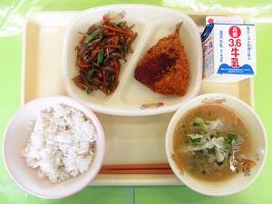 *牛乳*麦入ごはん*あじフライ*かみかみきんぴら*みそ汁