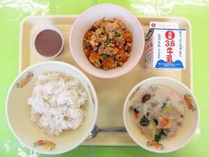 *牛乳*麦入りご飯*さわらのマヨネーズ焼き*生揚げの五目煮*みそ汁