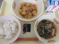 *ぎゅうにゅう *むぎいりごはん *にくじゃが *みそしる *のりのつくだに