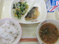*ぎゅうにゅう *むぎいりごはん *さばのカレーチーズやき *おひたし *みそしる
