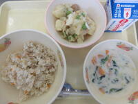 *ぎゅうにゅう *ツナピラフ *ジャーマンポテト *はくさいのクリームスープ